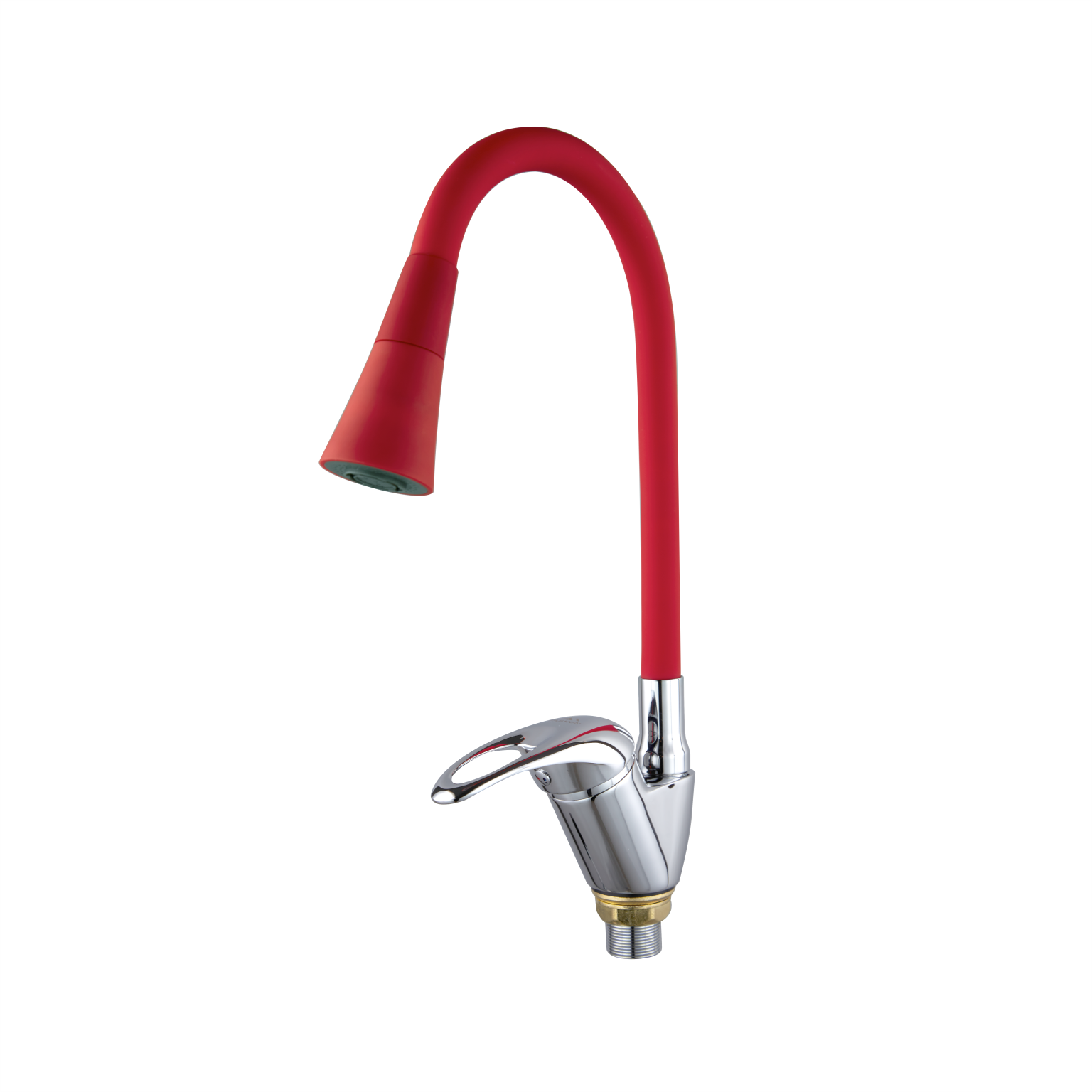 A4403+A7358 смеситель для кухни с гибким изливом, H=351 мм хром/красный латунь картридж D=40 мм излив гибкий силиконовый: H=200 мм, красный гибкая подводка: 450 мм в комплекте крепёж: гайка